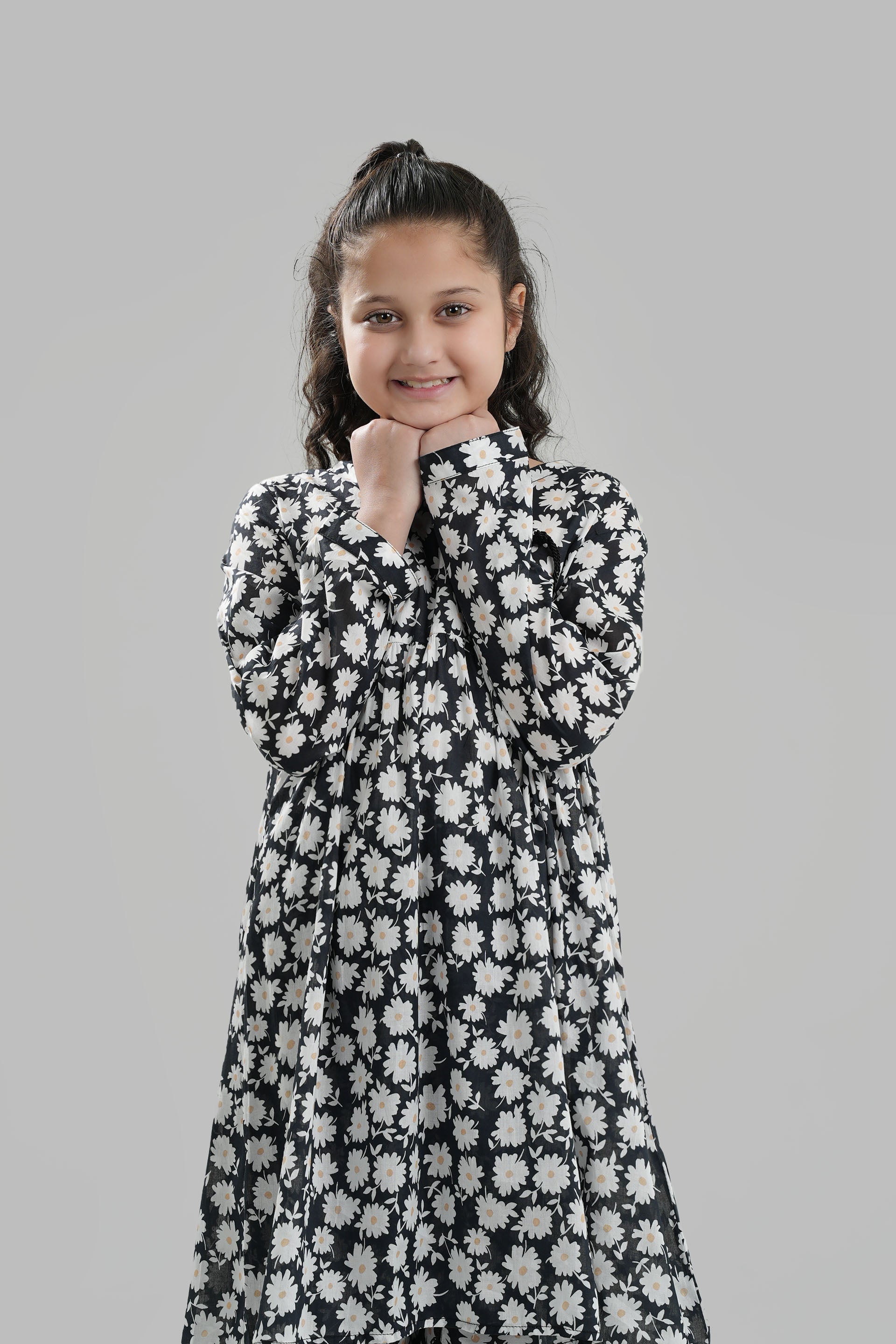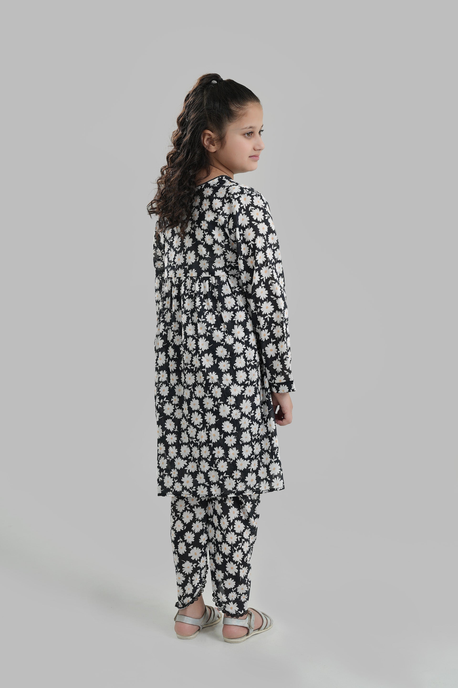 A contemporary composition is layered on this trendy silhouette shirt beautifully adorned with captivating artistic floral prints in vibrant colors portrayed on a luscious gold canvas. Paired with a matching Trouser, this style statement outfit is a perfect option for your girls to embrace this spring season.