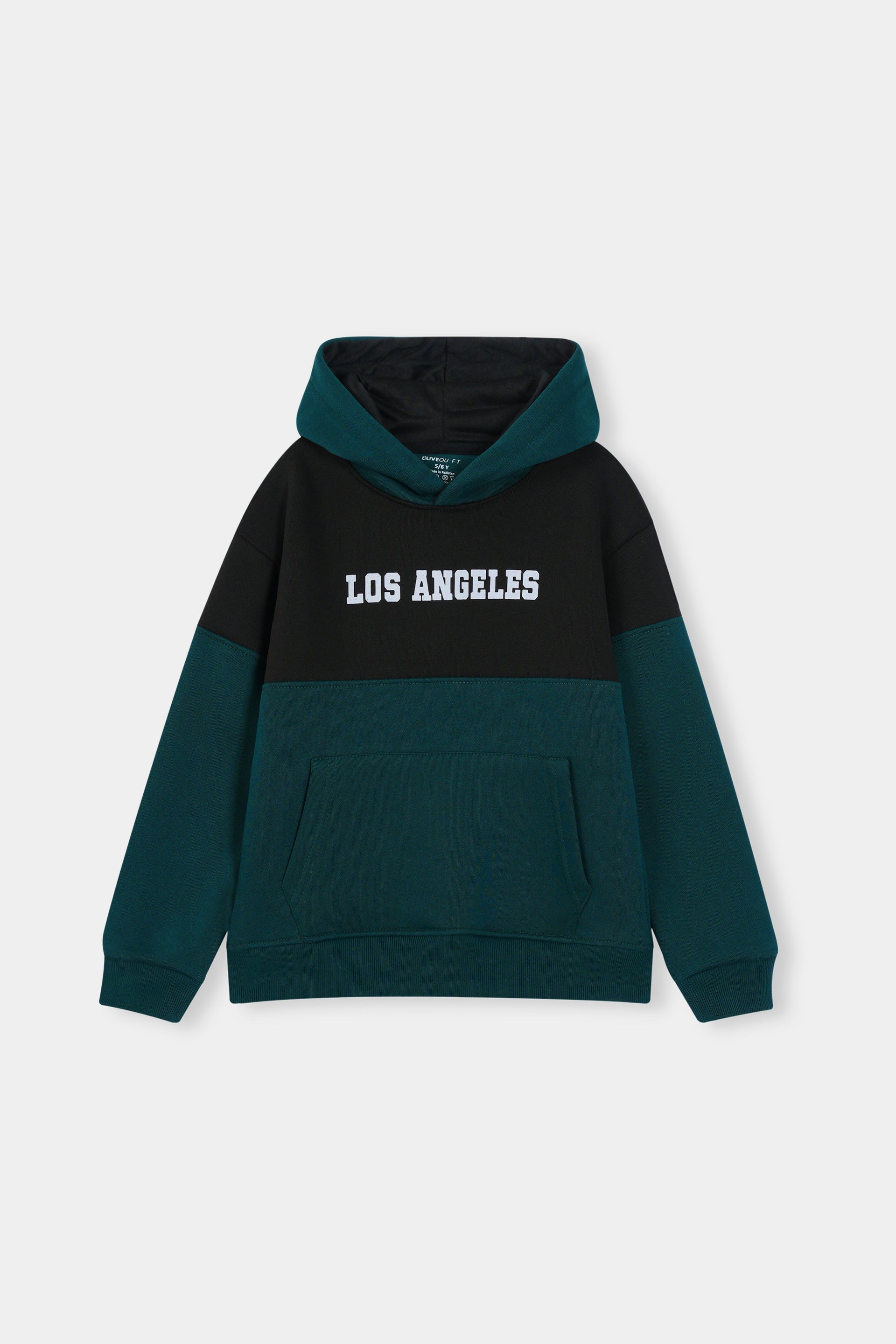 This Boys Los Angeles Colorblock Hoodie & Jogger Set in teal and black offers a stylish urban look with comfortable, durable fabrics designed for active wear. The hoodie features bold colorblocking that enhances visual appeal, while the matching joggers ensure a cohesive outfit perfect for casual outings or play. Ideal for layering or wearing alone, this set balances trend-conscious design with practical comfort.