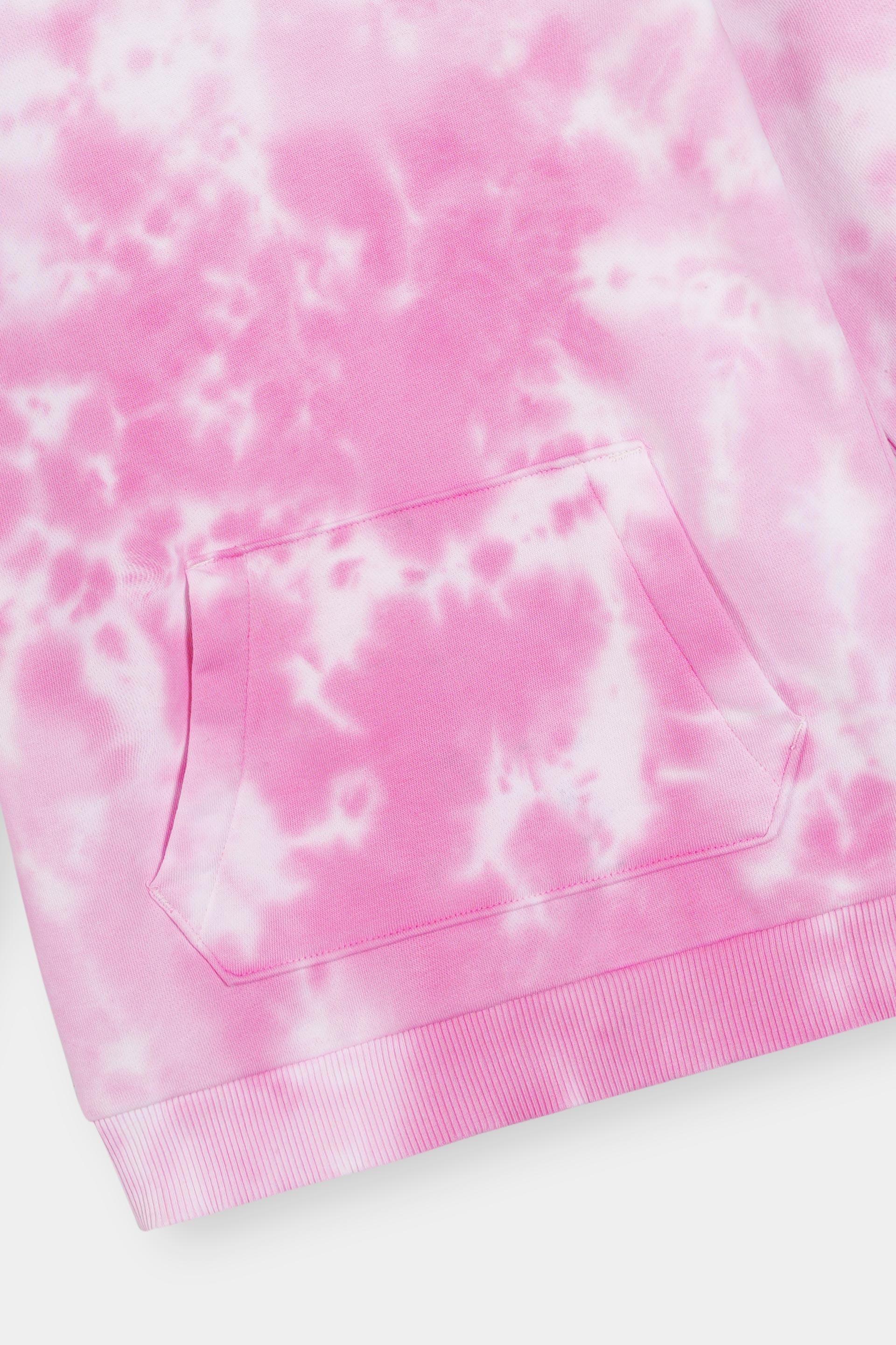 This boys' pink tie-dye pullover hoodie offers a vibrant, modern look with its unique color pattern. Designed for comfort and functionality, it features a front kangaroo pocket that provides convenient storage and a cozy handwarmer. Ideal for everyday wear, this hoodie blends trend-forward style with practical design.