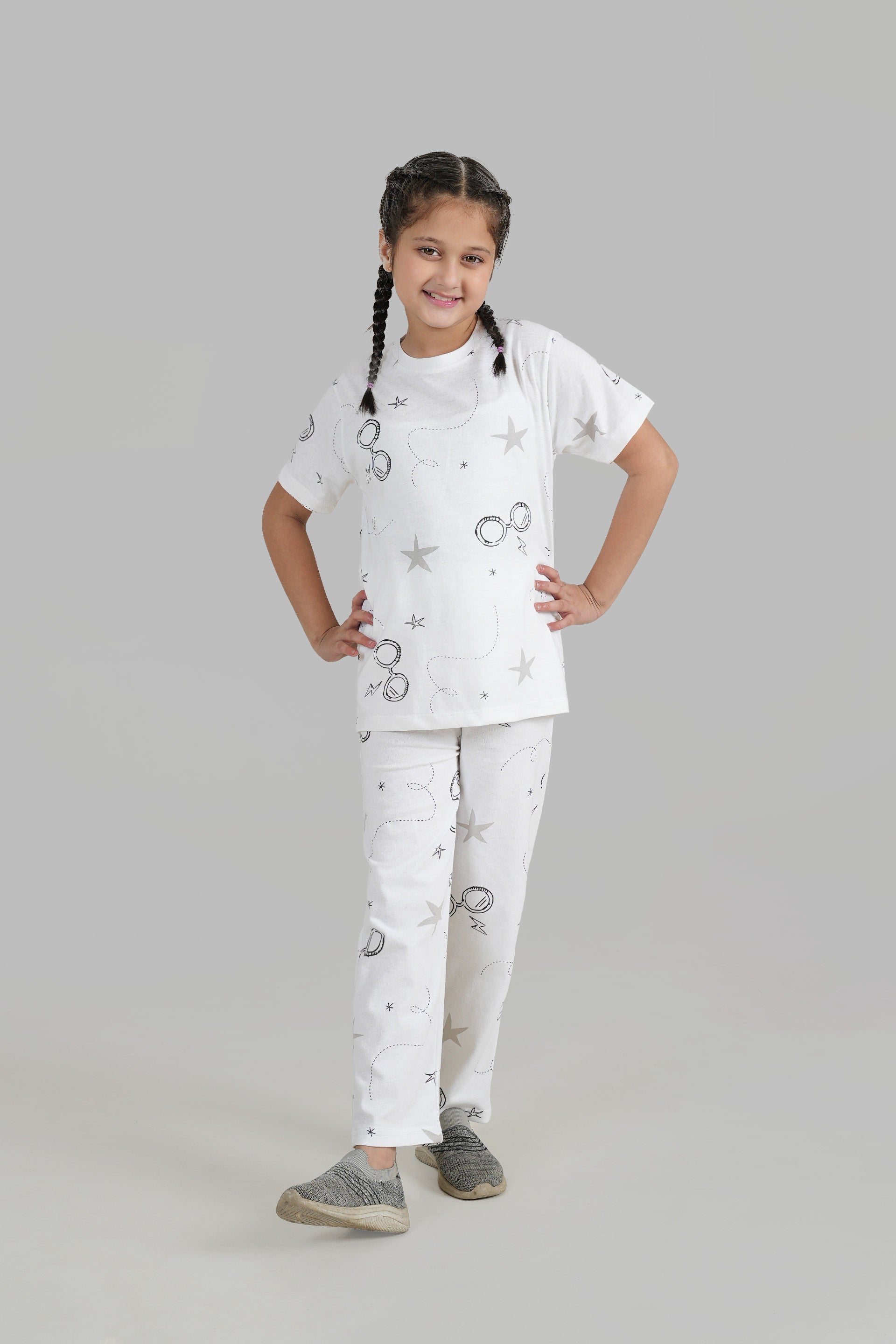 This Girls All-Over Printed Soft Cotton Suit is the perfect choice for a comfortable night's sleep. Made with soft cotton, this suit will provide extra warmth and coziness. Featuring an all-over print, it adds a fun and stylish touch to any bedtime routine. Get ready for a peaceful slumber with this night suit.