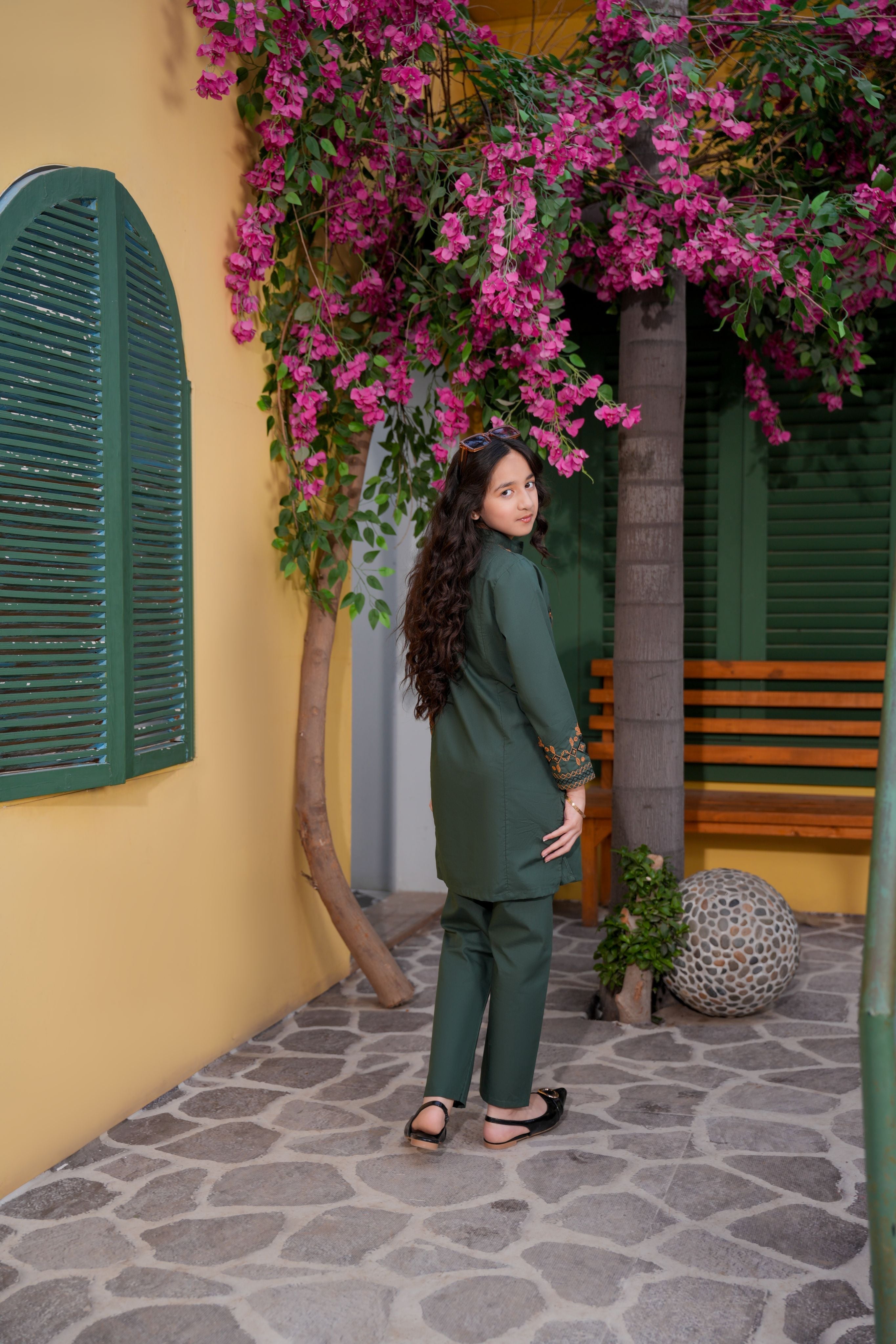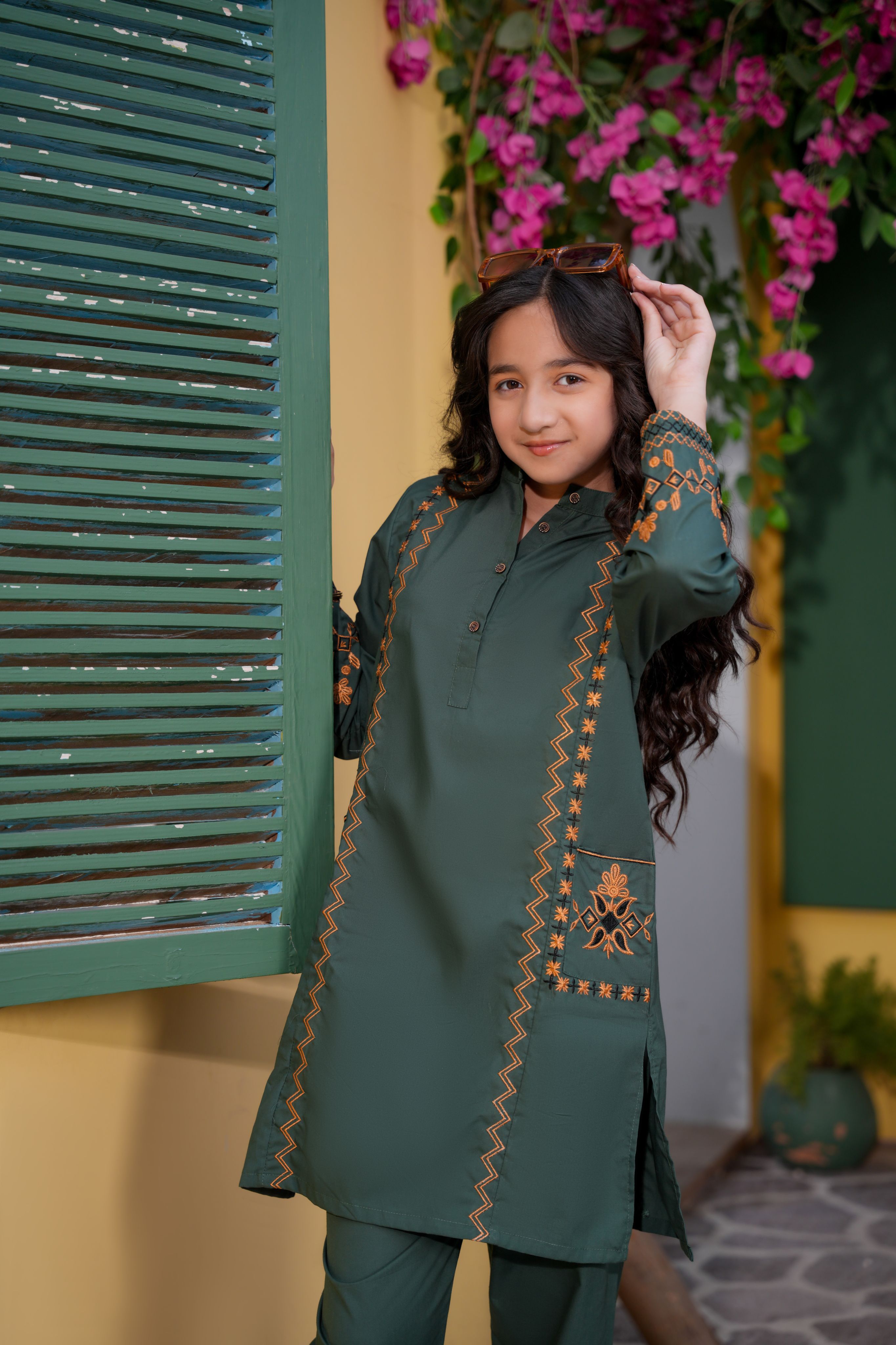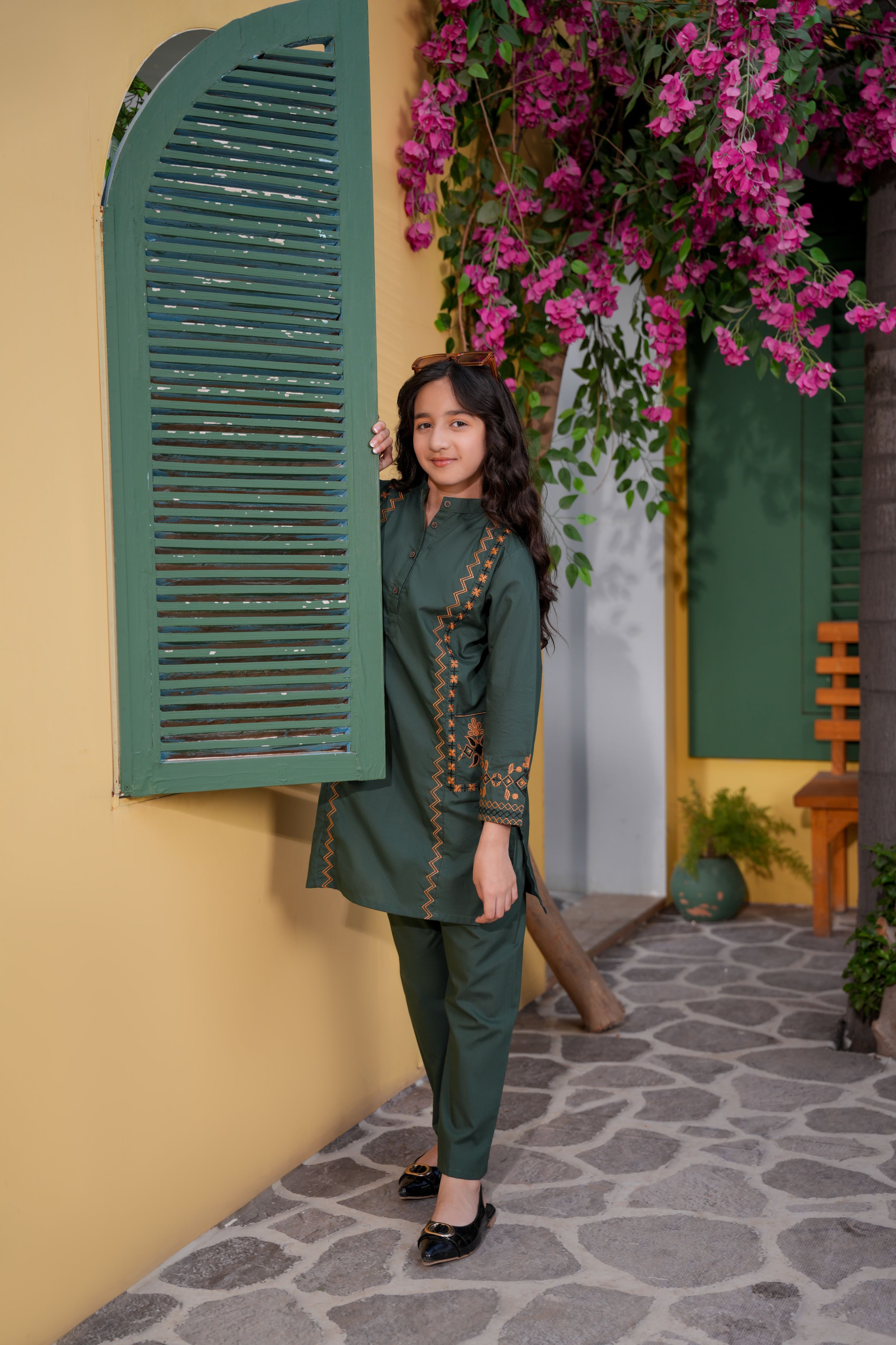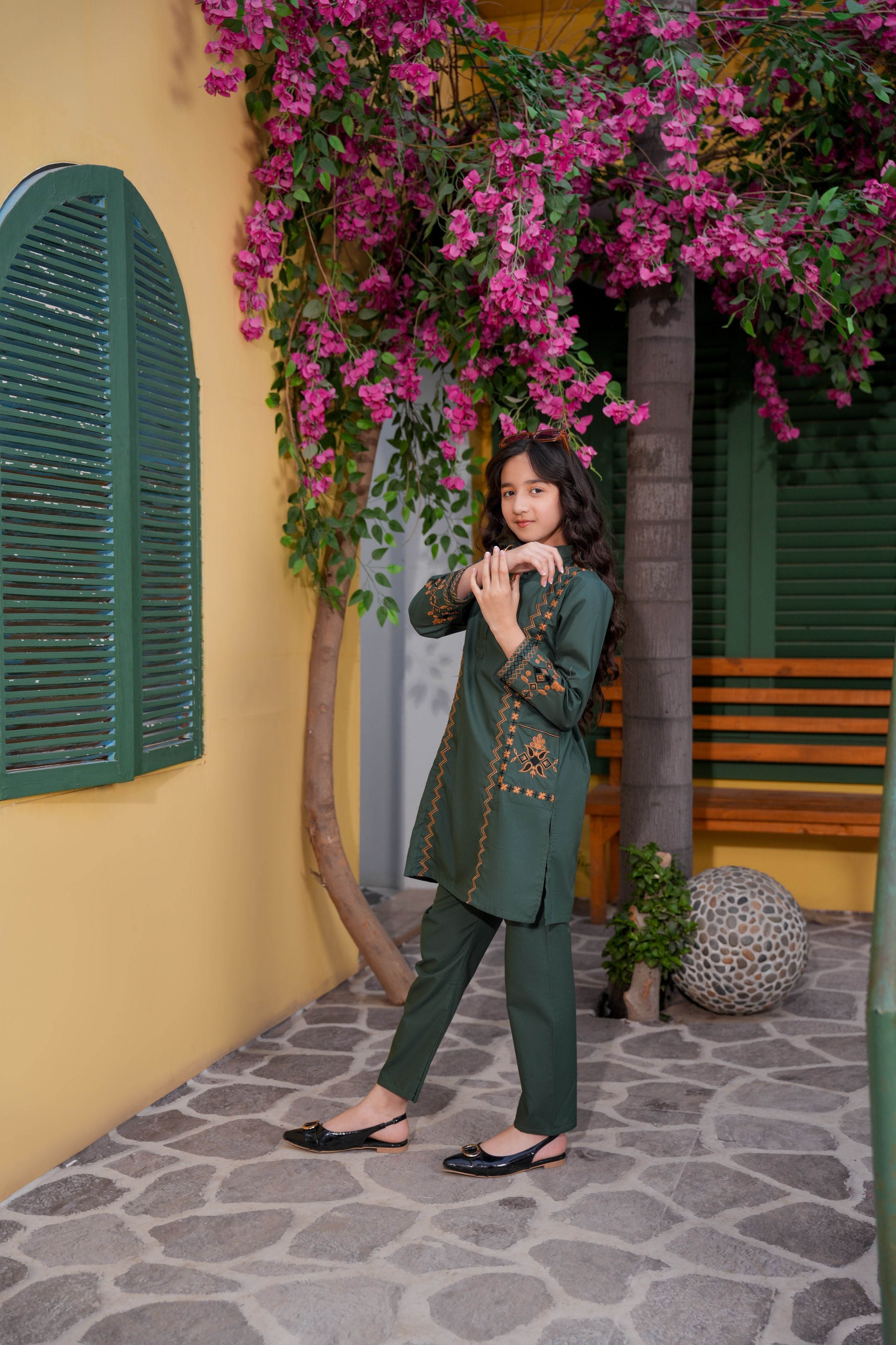 A contemporary composition crafted in a trendy silhouette shirt beautifully adorned with captivating designs embroidered in vibrant colors illustrating traditionally rich elements. Paired with a classy solid Trouser this style statement outfit is a perfect option for your girls to embrace at everyday occasions.