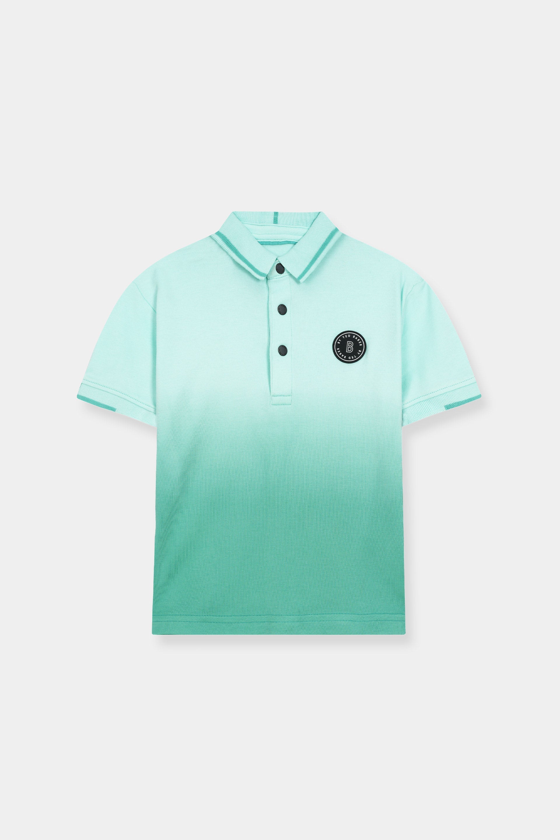 This kids polo shirt is crafted from soft, breathable cotton fabric to ensure lasting comfort throughout the day. Designed with a stylish gradient color effect that transitions smoothly from light mint to deeper green, it offers a fresh and modern look. The classic polo collar with button closure adds a smart touch, while the small round chest badge enhances the overall style.