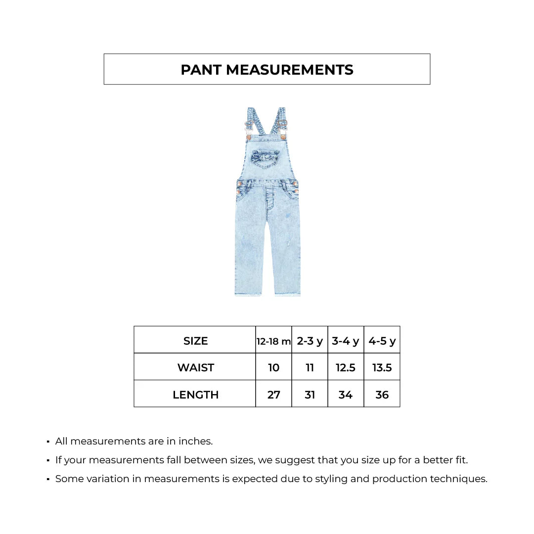 These light wash denim overalls are a playful and trendy choice for kids. Featuring adjustable shoulder straps, a chest pocket with a decorative bow detail, and classic side button closures, they blend style and functionality effortlessly. The slightly distressed finish and faded look add a cool, casual vibe—perfect for everyday adventures or laid-back outings. Pair them with a tee or long sleeve for year-round comfort and charm.