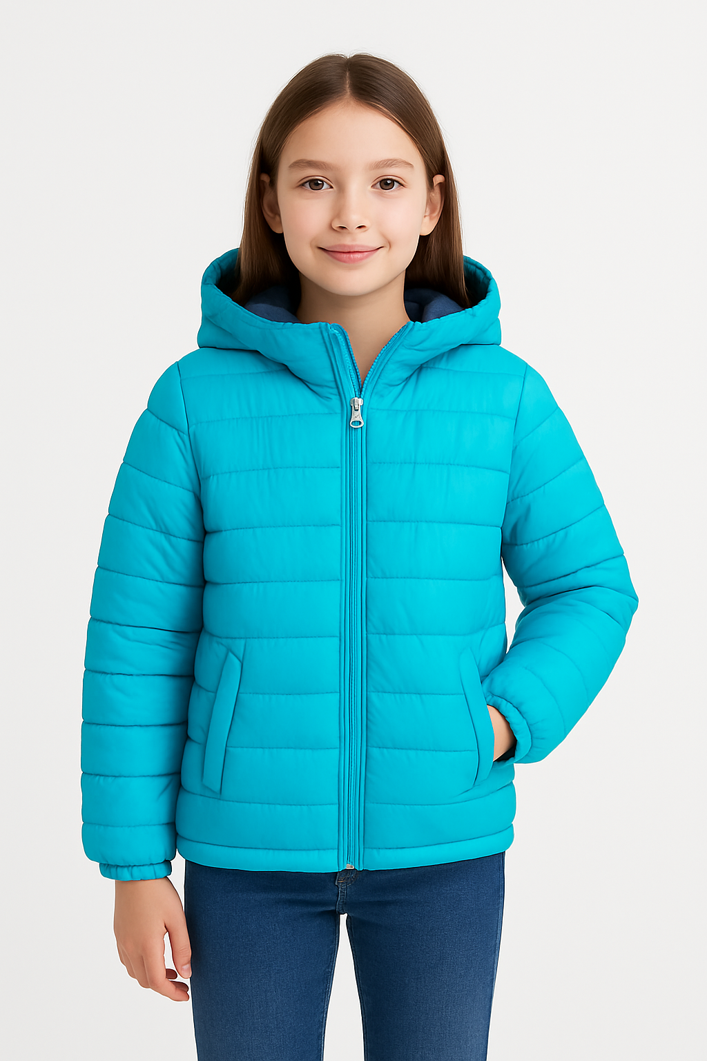 Keep your little one cozy and stylish with this premium blue puffer jacket. Designed with a soft quilted exterior and lightweight insulation, it provides excellent warmth without feeling bulky. The full front zip and hood add extra protection against chilly winds, while the snug elastic cuffs ensure a comfortable fit. Perfect for school, outdoor play, or casual outings, this jacket combines comfort, function, and fashion in one.