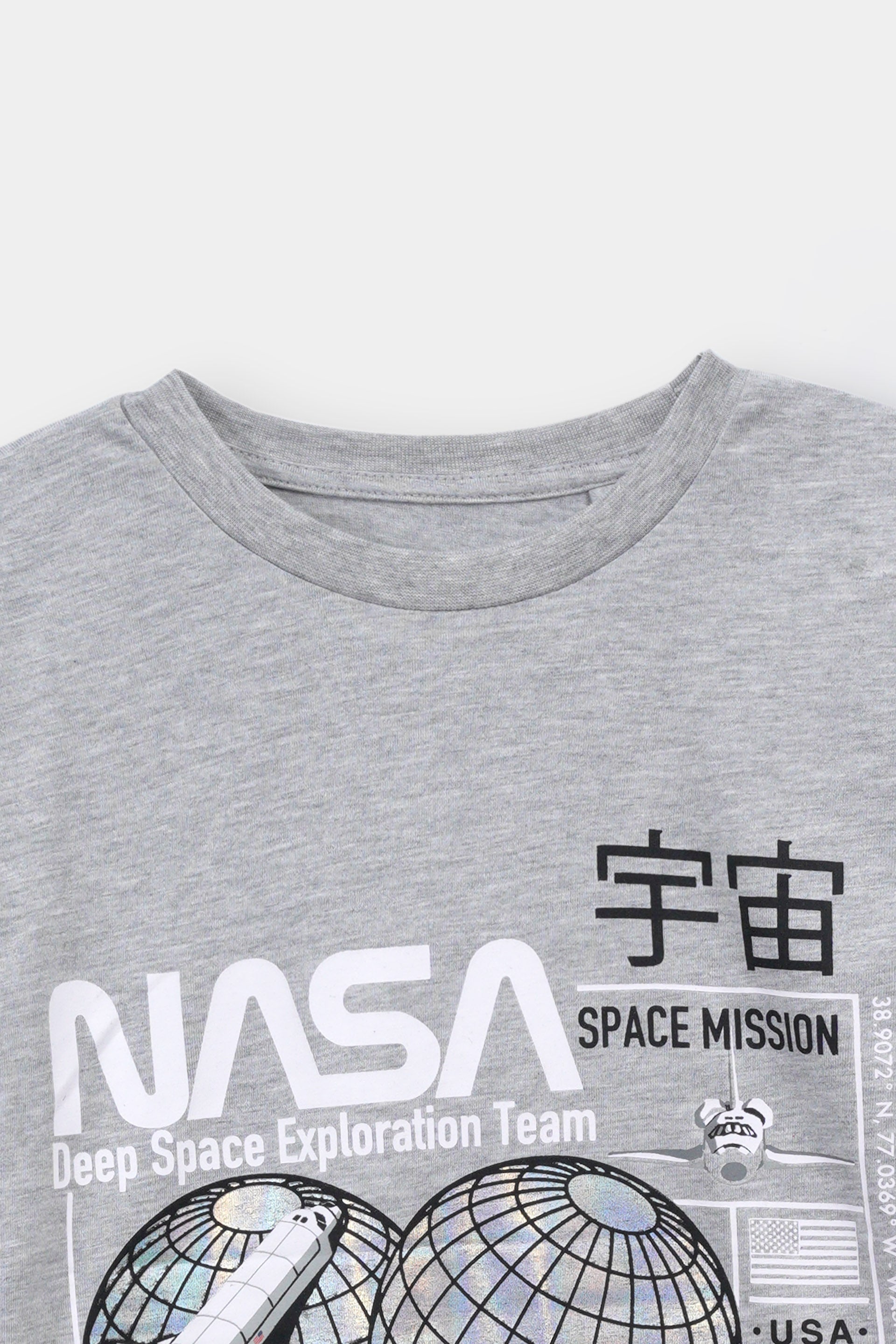 Gray "NASA" Slogan Cotton T-Shirt For Kids