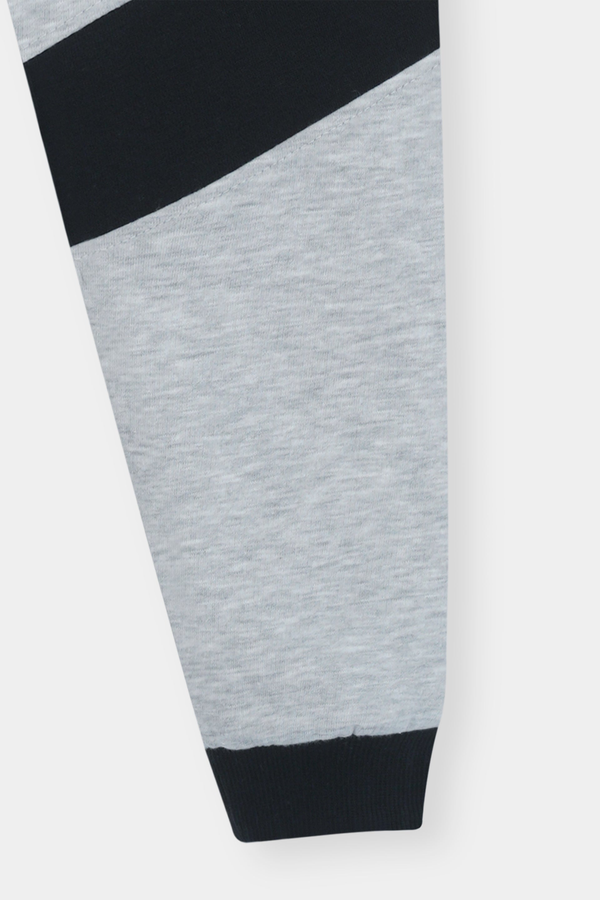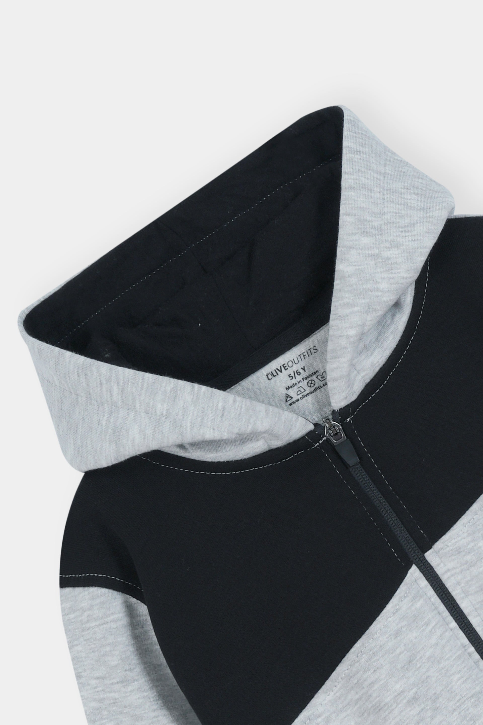 This stylish two-tone boys' tracksuit set features a versatile grey and black hoodie paired with matching joggers. Crafted for comfort and durability, it offers an easy, coordinated outfit perfect for active days or casual wear. The breathable fabric and relaxed fit ensure unrestricted movement, making it ideal for play or sports activities. This set combines modern design with practical comfort to keep your child both looking sharp and feeling comfortable throughout the day.
